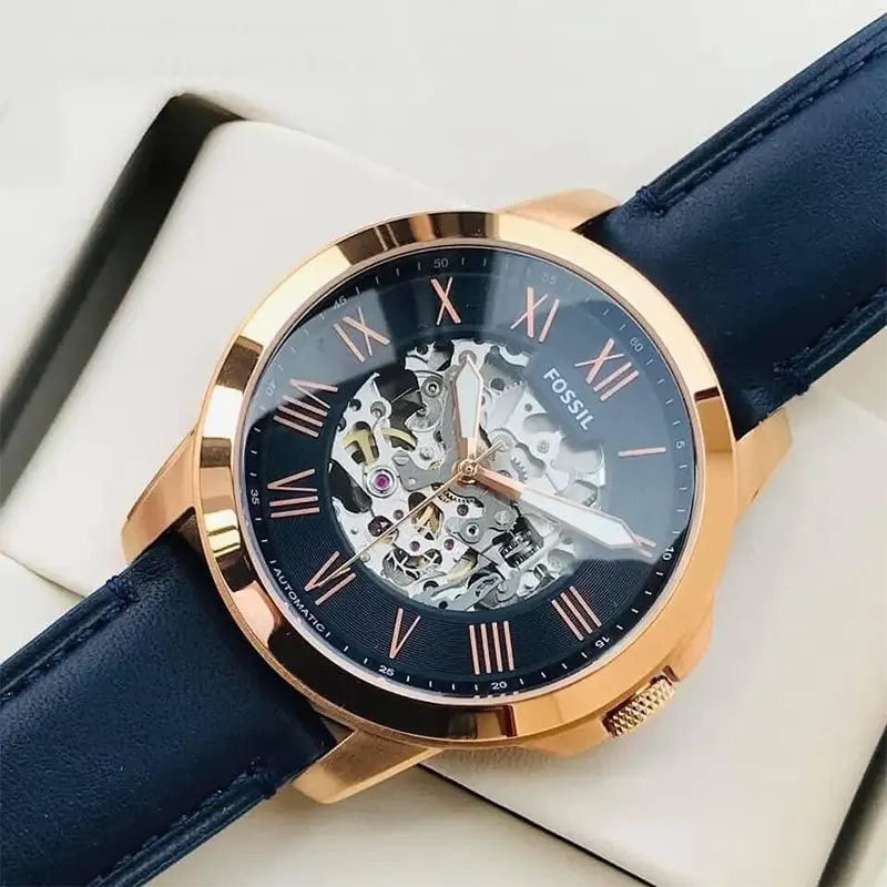 - Fossil Grant Automatic Blue Leather Men's Watch | ME3102